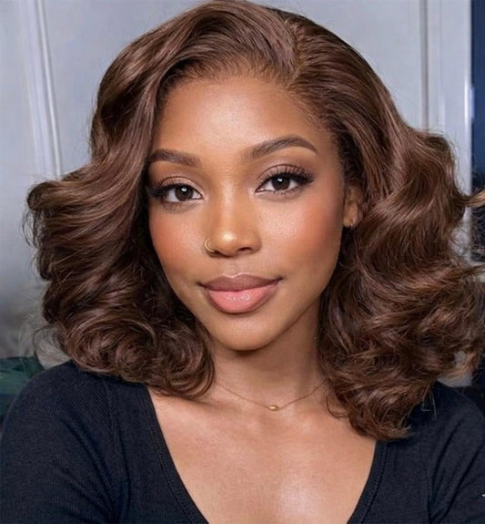 4/350 Highlight Loose Fumi Echthaarperücken Bouncy Curly Bob 13x4 Lace Front Wear to go Glueless
